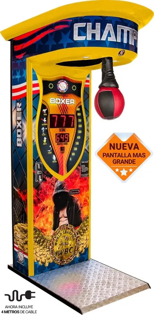 Una máquina de boxeo arcade es un juego de golpeo operado con monedas que mide la fuerza del puñetazo del jugador. Es una atracción muy popular en bares, salones de juegos y eventos porque llama la atención y genera ingresos constantes.