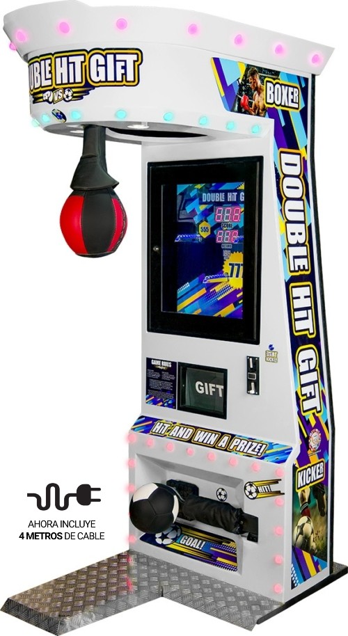 Esta versátil máquina ofrece tres emocionantes desafíos: boxeo, patada y una función de premios, todo en un diseño compacto. Equipado con luces LED vibrantes para mayor atractivo, los jugadores pueden mostrar su fuerza y habilidad golpeando el saco de boxeo o el balón de fútbol, y ganar premios especiales con motivación y emoción adicionales. ¡Es el triple de acción en un solo juego!