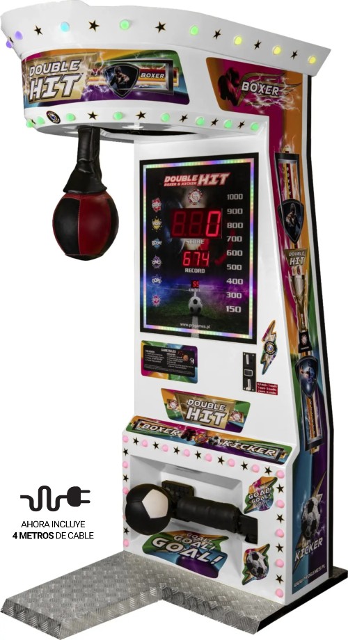 Ofrece dos emocionantes desafíos en una máquina compacta con luces LED vibrantes que añaden un atractivo extra. Presiona el botón de inicio en la parte superior para liberar el saco de boxeo y poner a prueba tu fuerza, o presiona el botón inferior para patear el balón de fútbol y demostrar tus habilidades. ¡El doble de acción, todo en un solo juego!