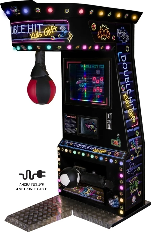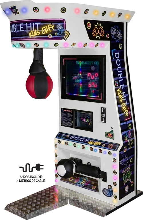 Esta máquina combina tres juegos divertidos en uno: ¡boxeo, patada y una función de premios! Diseñada para jugadores jóvenes, mantiene a los niños entretenidos con emocionantes desafíos y luces LED vibrantes, lo que la convierte en una opción ideal para lugares familiares.