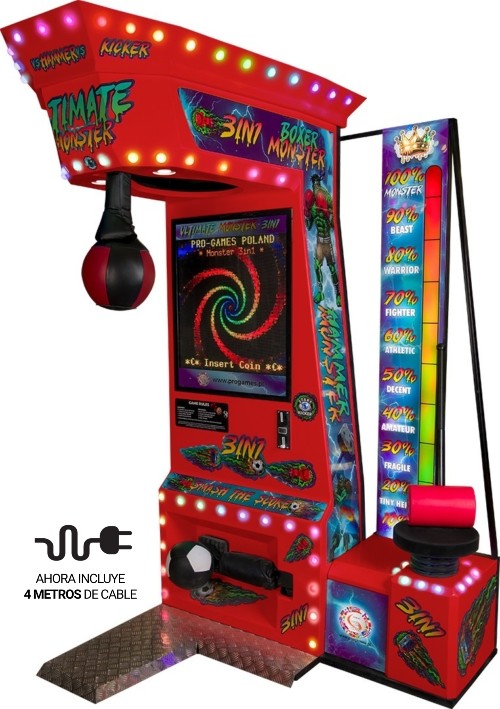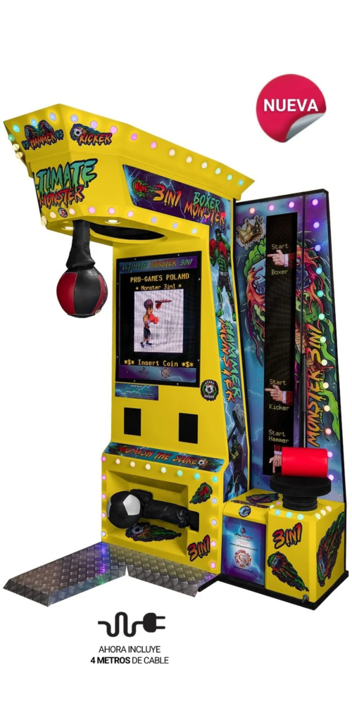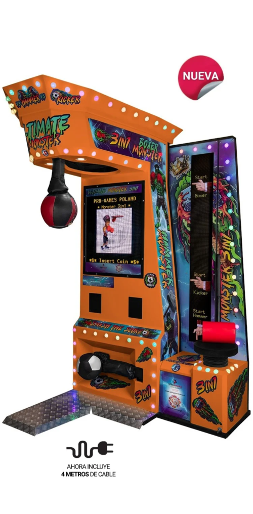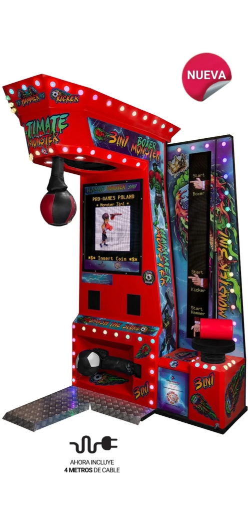 Diseñada para uso intensivo, la máquina 3 en 1 Boxeo/Kicker/Martillo garantiza diversión, competencia y emoción para jugadores de todas las edades.