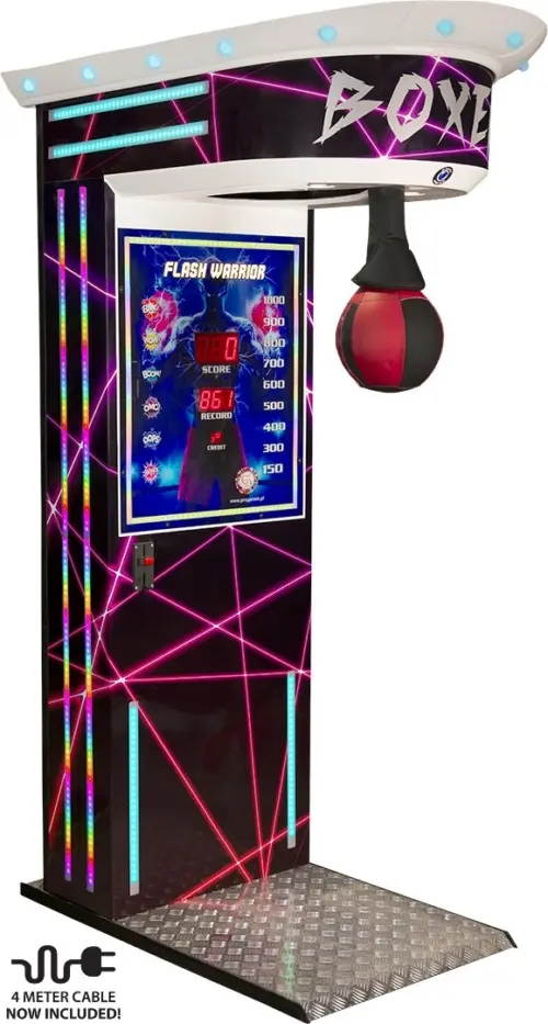 The Boxer Flash is a high-energy boxing game that draws players in with its bright LED lights and thrilling gameplay, Perfect for arcades, sports bars, and amusement centers, this machine is designed to entertain and challenge players of all ages.