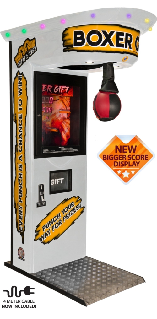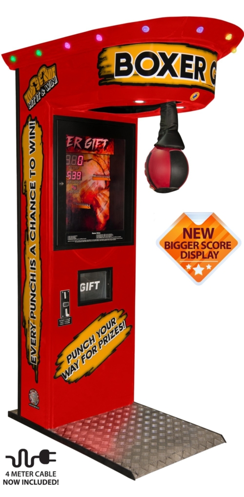 • Strength Challenge + Prizes: Players punch the bag, score high, and win special prizes.